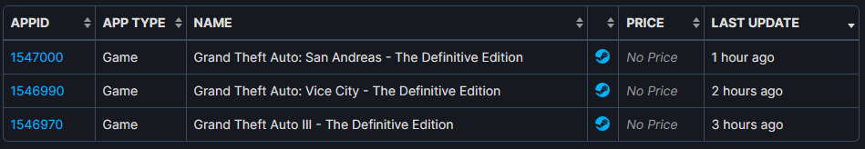 GTA DE SteamDB was updated 1 month before Mobile versions launched.