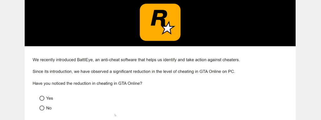 Recently, Rockstar publicly addressed the impact of BattlEye for the first time. In a community survey, they reported a “significant reduction” in cheating.